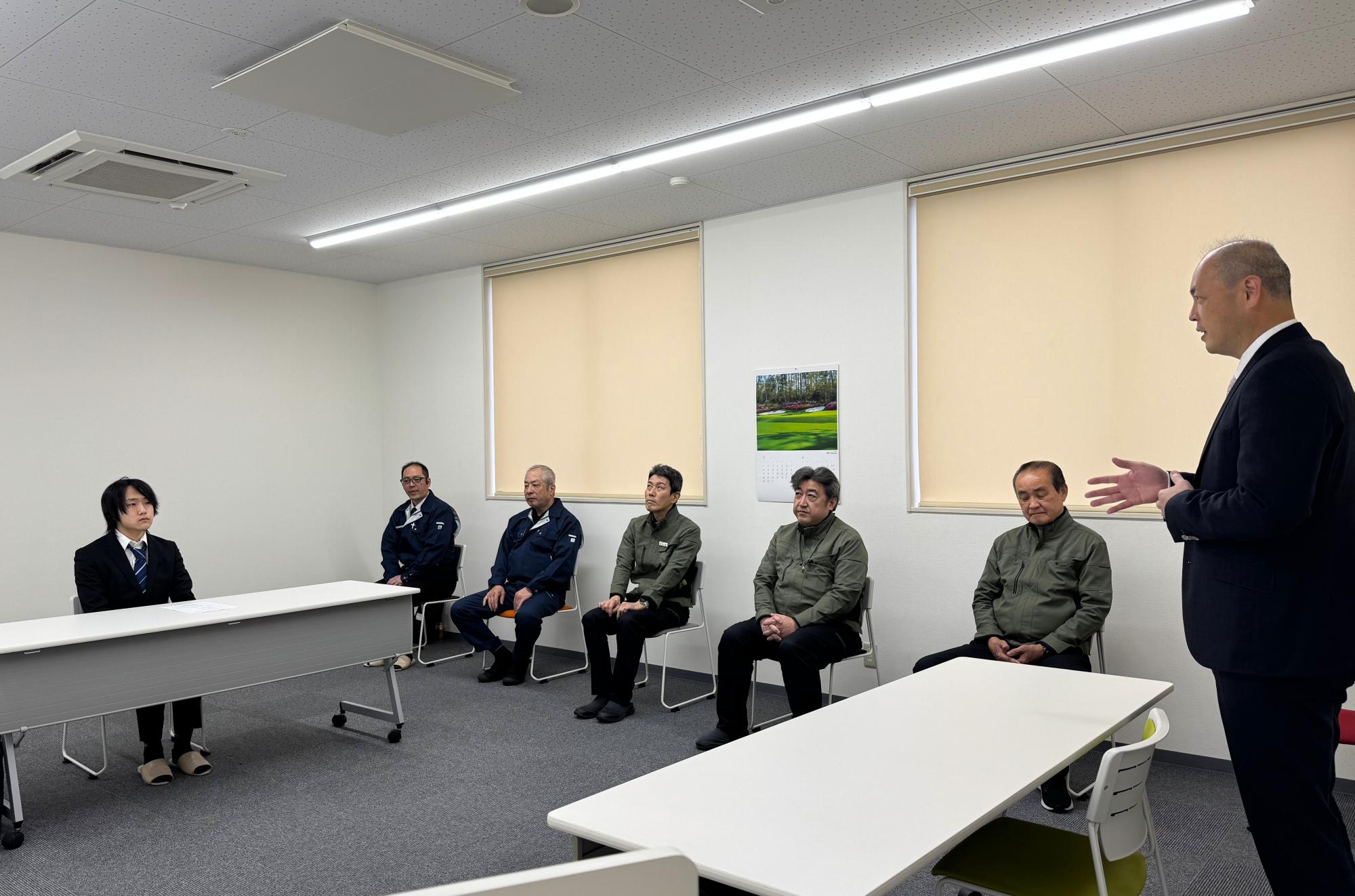 令和8年4月1日、当社会議室にて入社式を行い、塗装部(北陸セイデン)に1名の新入社員を迎えました。