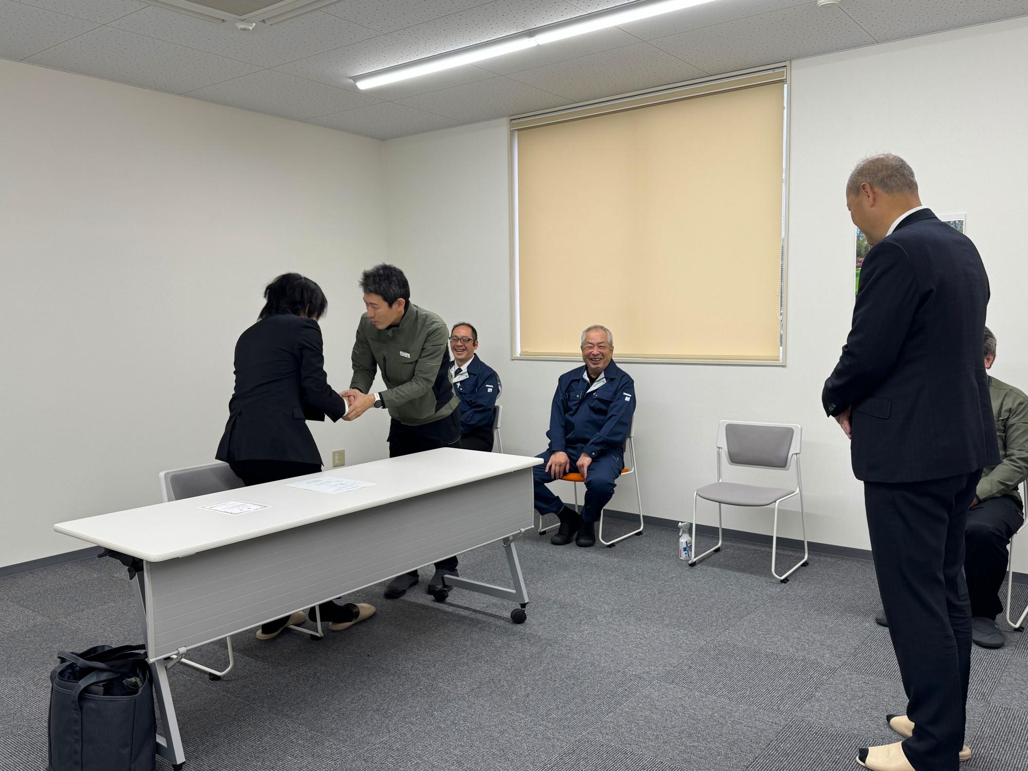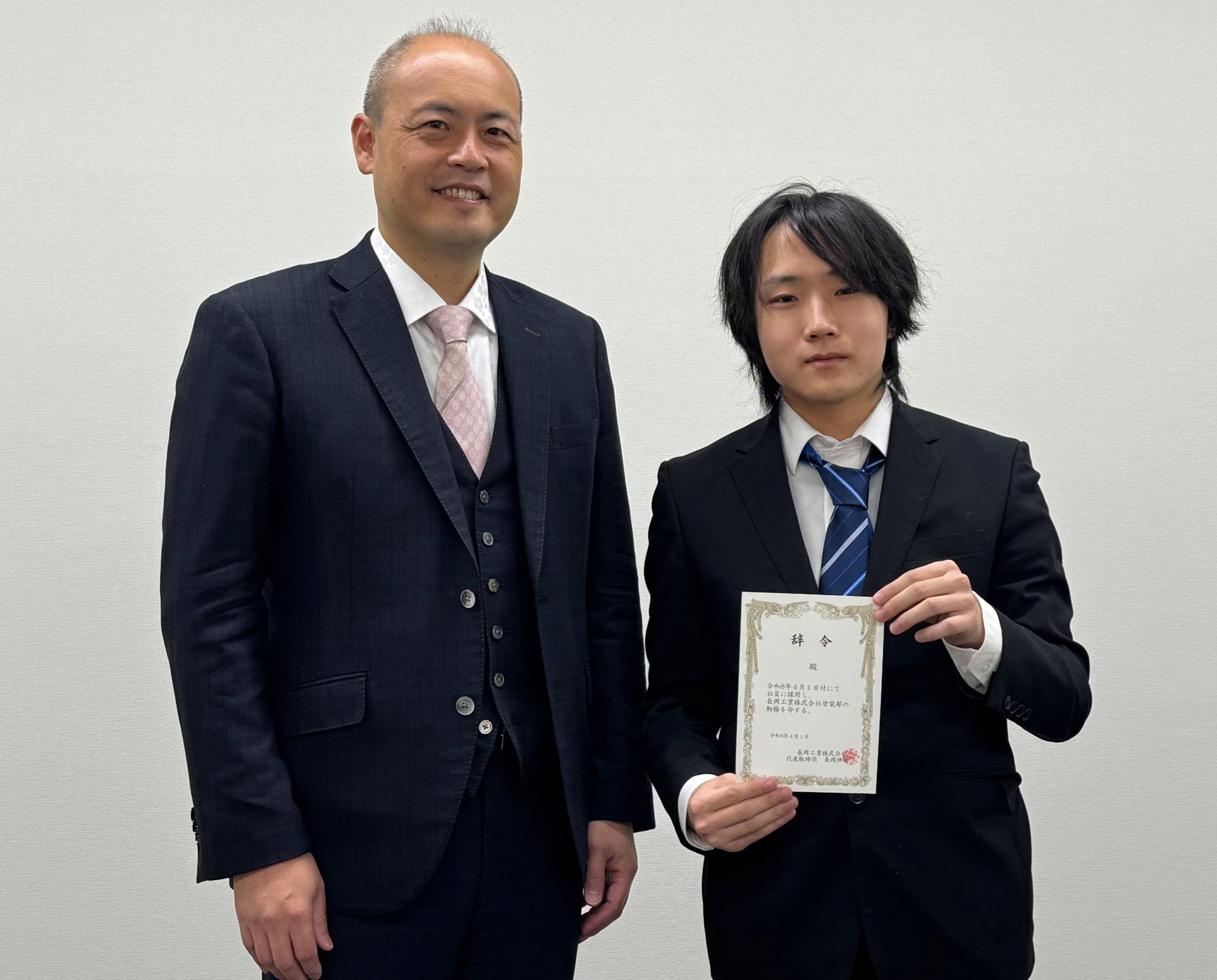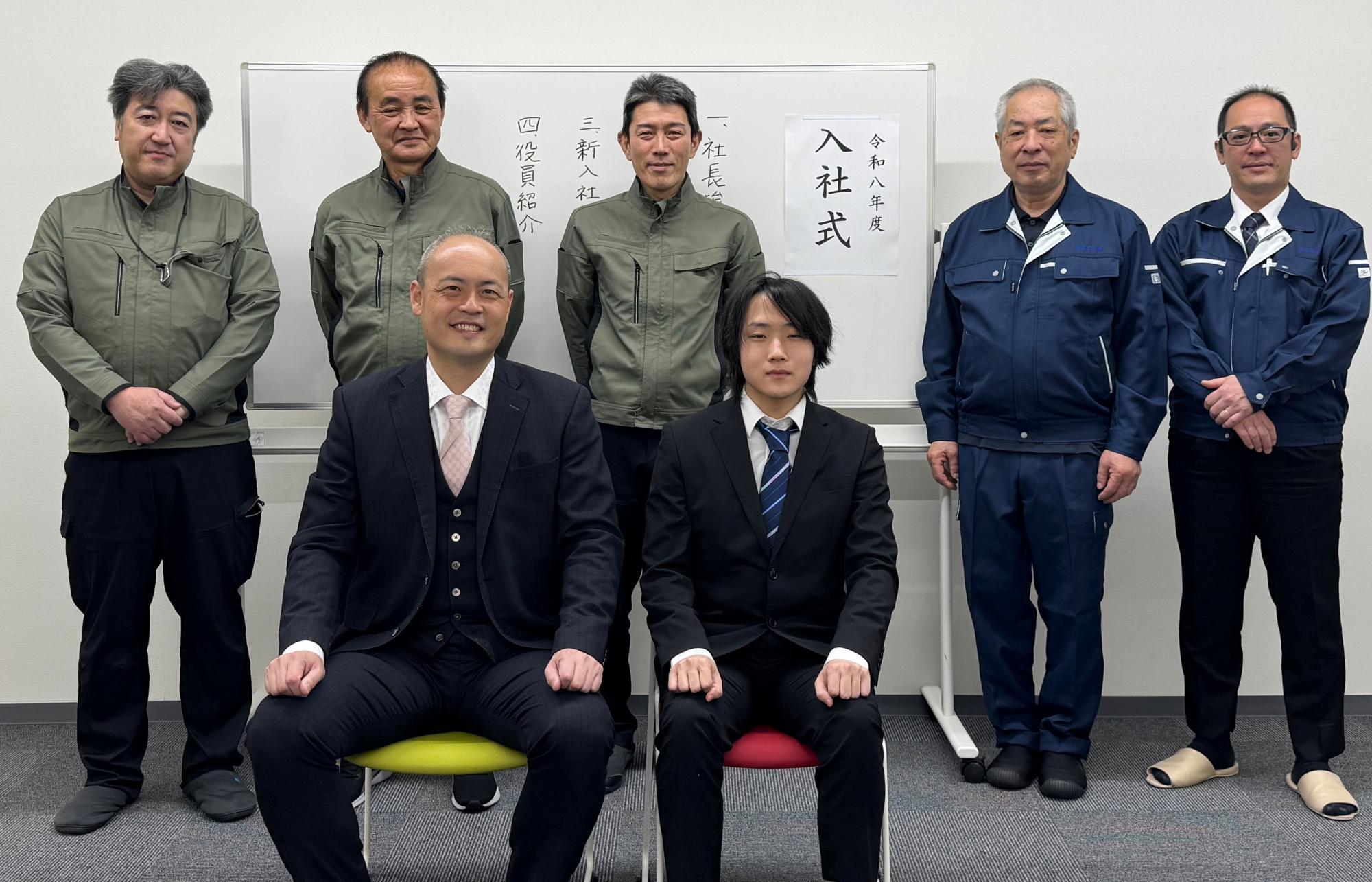 令和8年4月1日、当社会議室にて入社式を行い、塗装部(北陸セイデン)に1名の新入社員を迎えました。